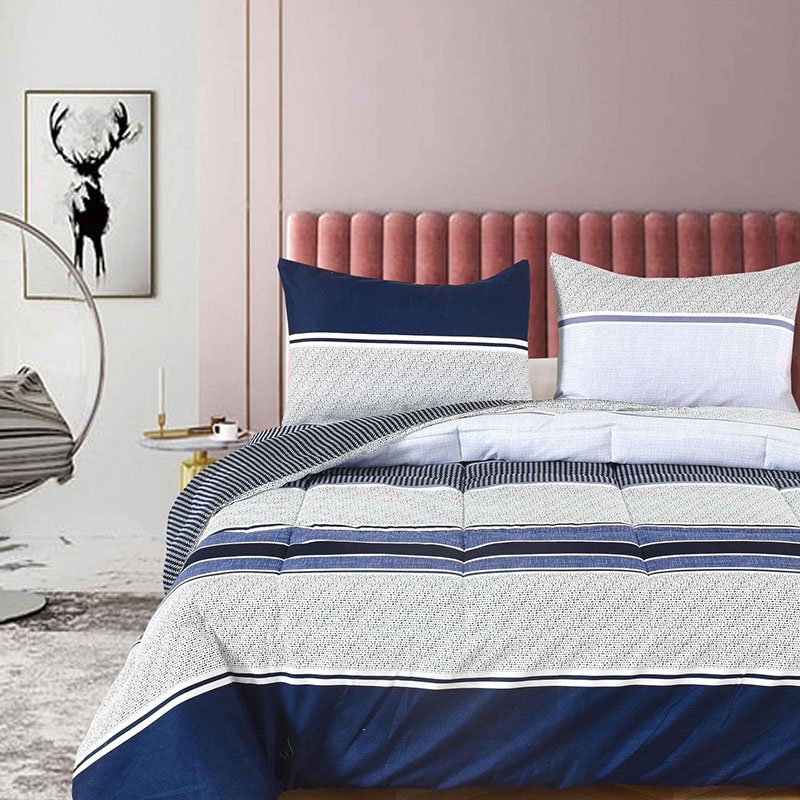 Edredón acolchado King 1200 hilos color celeste con hojas lilas y verdes